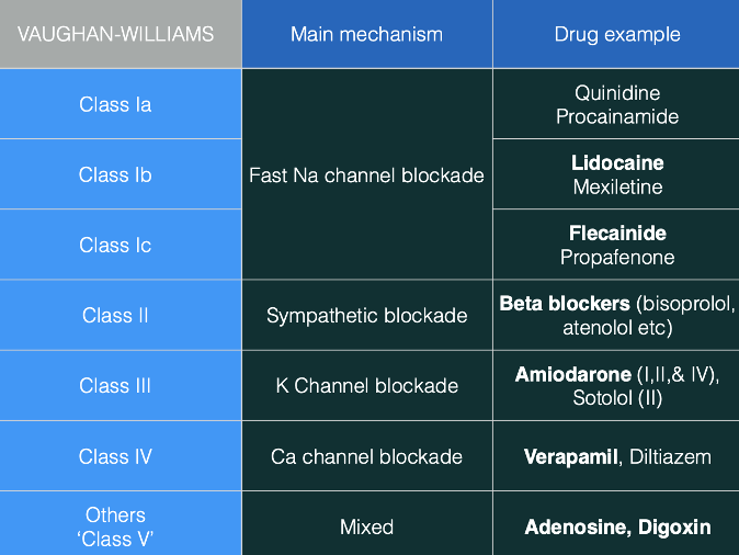 Flecainide is a Class I anti-arrhythmic that works by inhibiting sodium channels, thereby delaying the onset of myocardial depolarisation and increasing the myocardial refractory period. Flecainide is most commonly used for re-entrant supraventricular tachycardias (SVTs), especially in patients with atrial arrhythmias. It is especially effective in re-entrant SVTs but is not useful in nodal tissues because they lack sodium channels. Class I drugs are further divided into 1a, 1b, and 1c, with flecainide being a Class 1c drug (which has the most pronounced effect on depolarization and refractory periods).