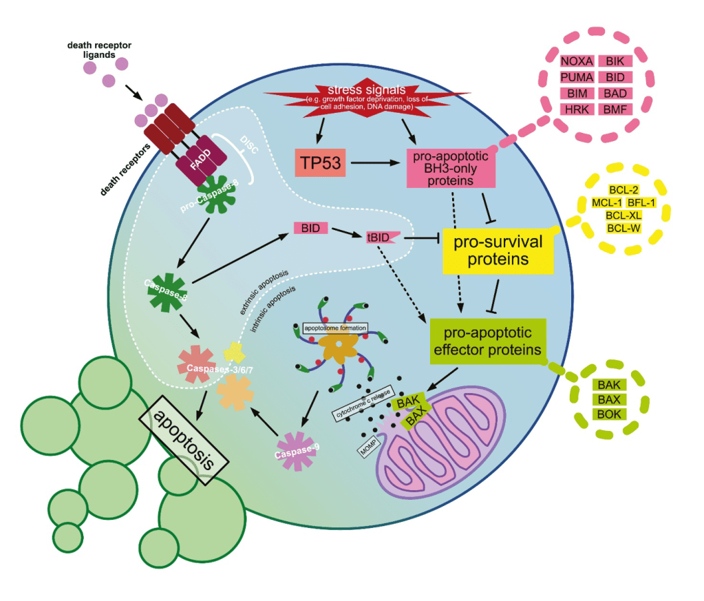 B) is incorrect as proteins like Bcl-2 are anti apoptotic so reducing Bcl-2 would promote apoptosis. Cancer cells often overexpress Bcl-2 to avoid cell death, they do not downregulate it.
