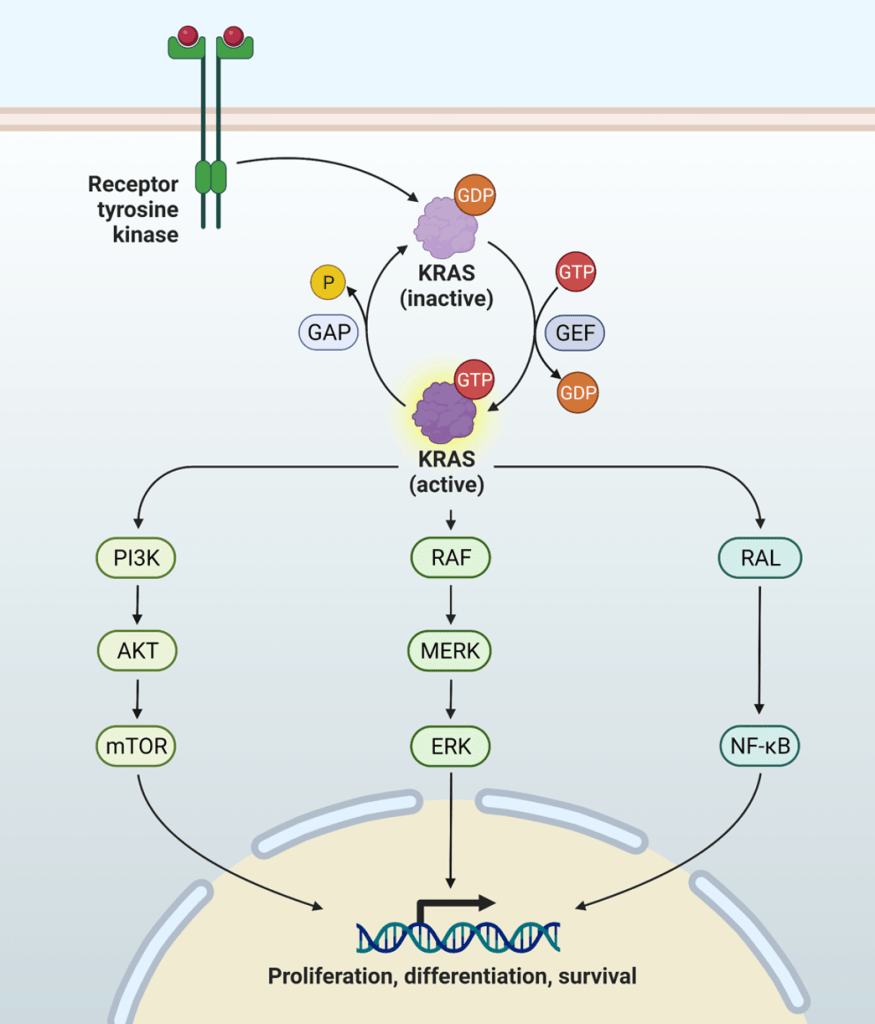 Explanation: TGF-β (Transforming Growth Factor-beta) is a cytokine that regulates cell growth, differentiation, and apoptosis. In normal cells, TGF-β signalling helps control cell proliferation and suppress tumours. It activates SMAD proteins, which enter the nucleus and inhibit growth-promoting genes. In colorectal cancer (CRC), mutations in TGF-β RII or SMAD4 lead to loss of tumour-suppressive function. When TGF-β signalling is disrupted, cells lose growth control, contributing to cancer progression.
