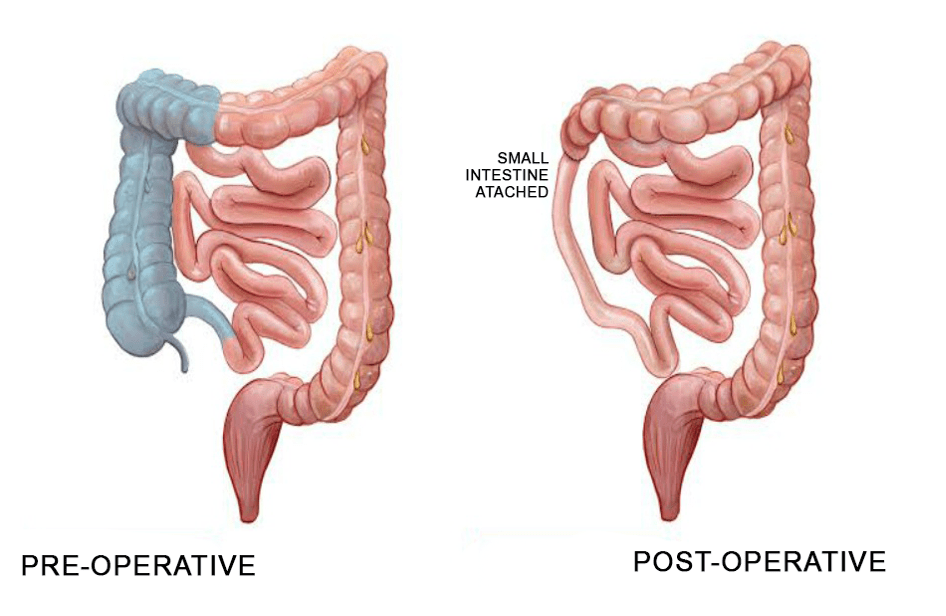 D) is incorrect as this is an example of an ileocecal resection which is unrelated.