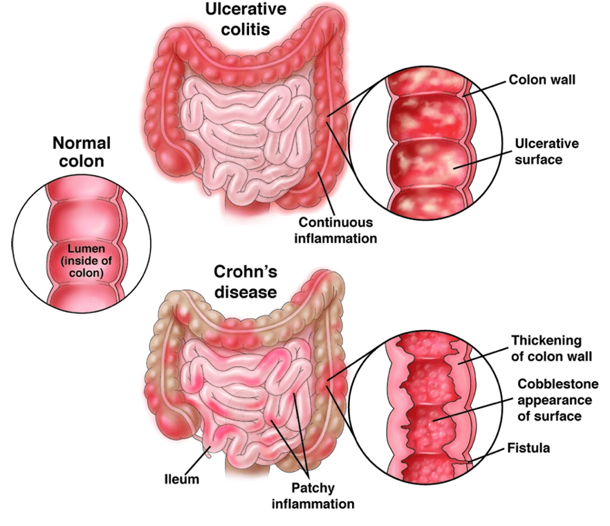 B) is incorrect because Irritable Bowel Syndrome (IBS) does not cause histological changes. It is a functional disorder characterised by abdominal pain that is relieved by defecation and altered bowel habits.