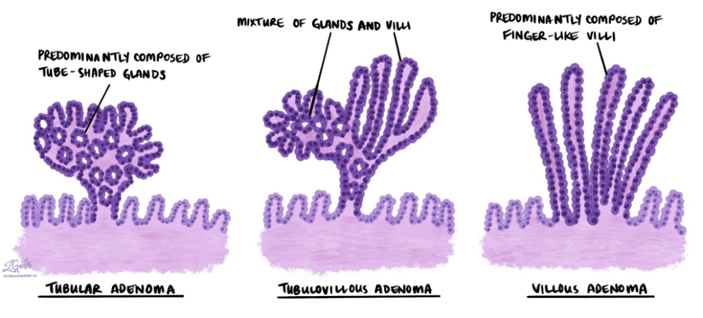 Option A is incorrect because tubular adenomas have a lower malignant potential compared to villous or tubulo-villous adenomas.