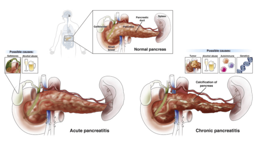 Option A is incorrect because although gallstones are the most common cause of acute pancreatitis, they typically cause obstruction of the common bile duct, leading to retrograde flow of bile into the pancreas. However, the patient’s history of alcohol use and lack of biliary obstruction on imaging makes gallstones less likely in this case.