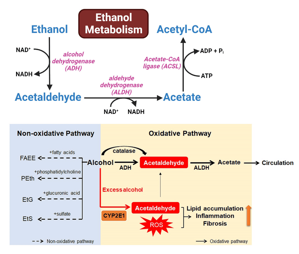Option C is incorrect because decreased NADH production would not lead to faster alcohol metabolism. In fact, chronic alcohol use increases NADH levels, which can impair the functioning of other metabolic processes, including oxidative phosphorylation.