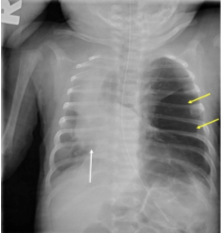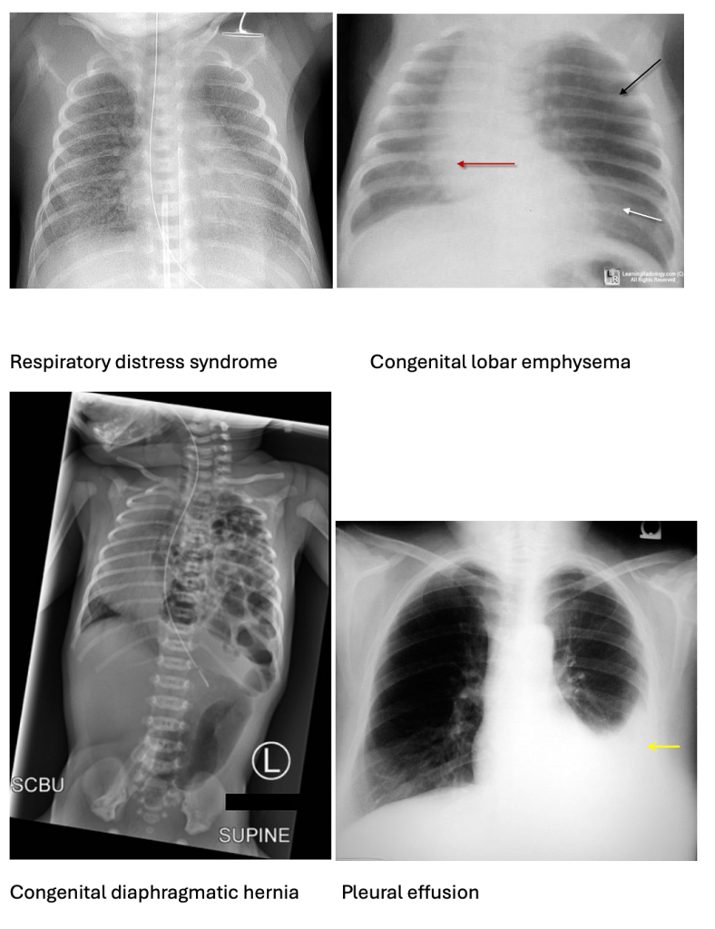 D) is incorrect as Congenital Diaphragmatic Hernia (CDH) involves abdominal organs herniating into the thoracic cavity, impairing lung development (pulmonary hypoplasia). X-rays show bowel loops in the chest.