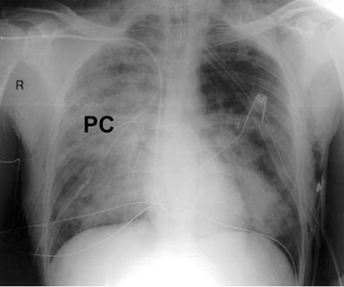 E) is incorrect as Pulmonary Hypoplasia is associated with CDH (congenital diaphragmatic hernia) or prolonged oligohydramnios. X-rays show small, bell shaped, underdeveloped lungs.