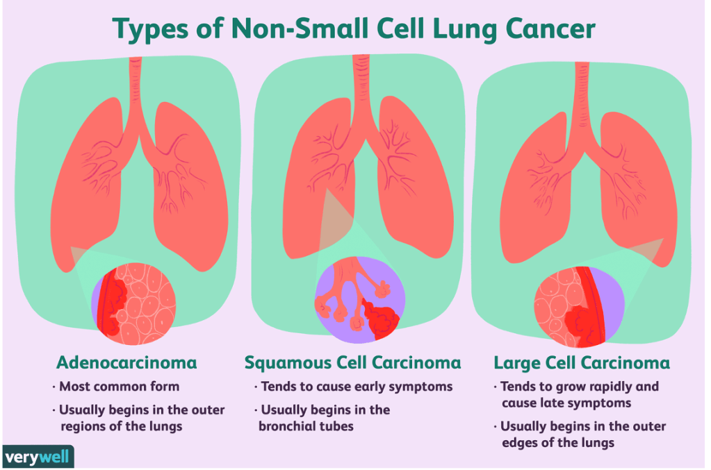 Adenocarcinoma is the most common subtype of non-small cell lung cancer (NSCLC) in patients who are non-smokers and is strongly associated with EGFR mutations. Targeted therapy against EGFR mutations (e.g., erlotinib, gefitinib) has been shown to be effective in treating EGFR-mutated adenocarcinoma.EGFR mutations can be treated with TKI’s– tyrosine kinase inhibitors, are a type of targeted therapy and cancer growth blocker drug