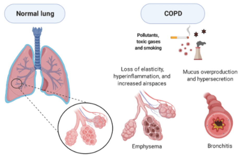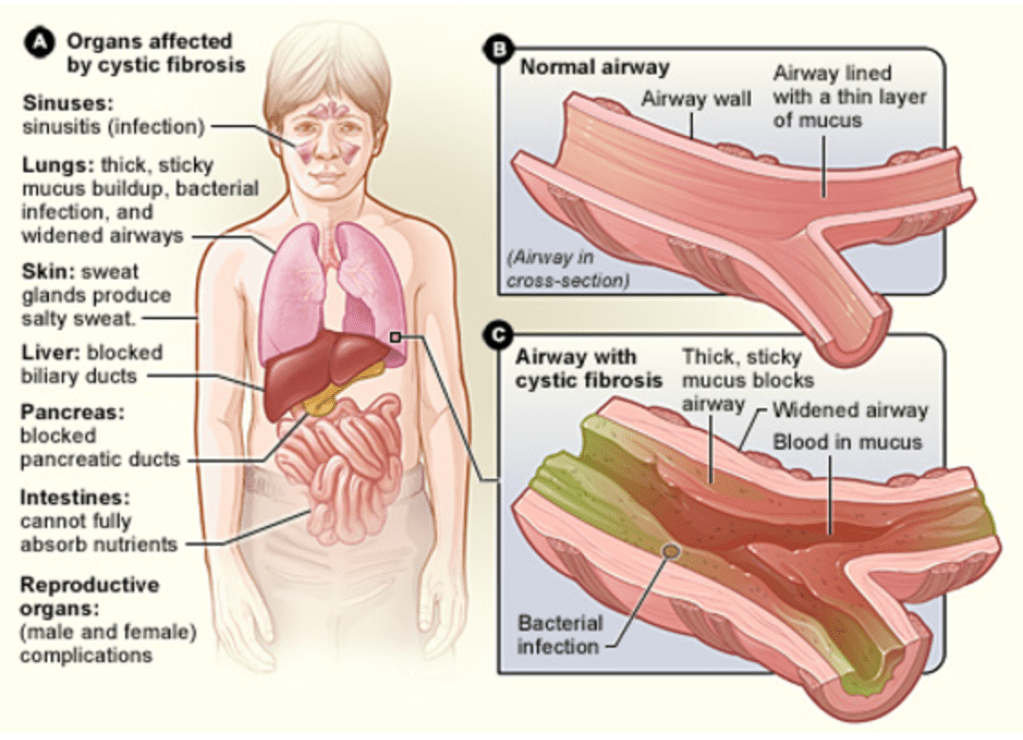 - Incorrect: Cystic fibrosis primarily affects the lungs due to thickened mucus and recurrent infections but is not typically associated with COPD in non-smokers.it is more commonly diagnosed in childhood and involves additional systemic features.
