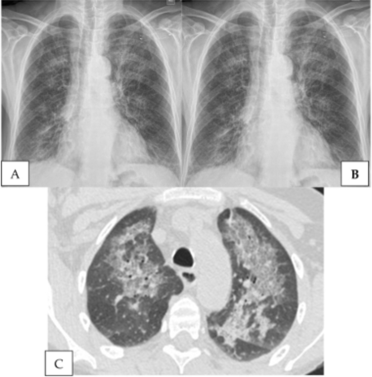 - Option E: Type 2 Respiratory Failure due to advanced neuromuscular fatigue exacerbating ILD. Neuromuscular fatigue can contribute to hypoventilation in chronic lung diseases, but there is no clinical indication in this case (e.g., significant muscular weakness or prior neuromuscular disease) to support this explanation. The underlying issue remains primarily respiratory due to ILD itself.