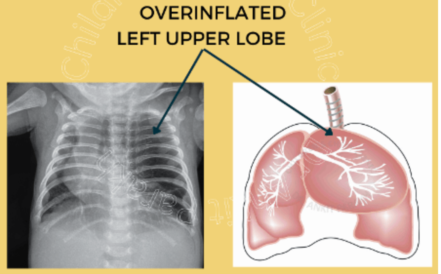 C) is incorrect as hyperinflated left upper lobe is seen in CLE – congenital lobar emphysema.