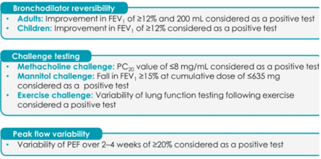 - Option D: Normal FeNO (10 ppb) and lack of bronchodilator reversibility. A single normal FeNO after treatment does not confirm or exclude asthma, particularly in the presence of other abnormal findings.