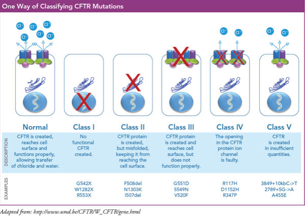 - Option E: Class V: Reduced protein quantity. Class V mutations result in decreased CFTR protein production but often result in a milder phenotype due to some functional protein being present.