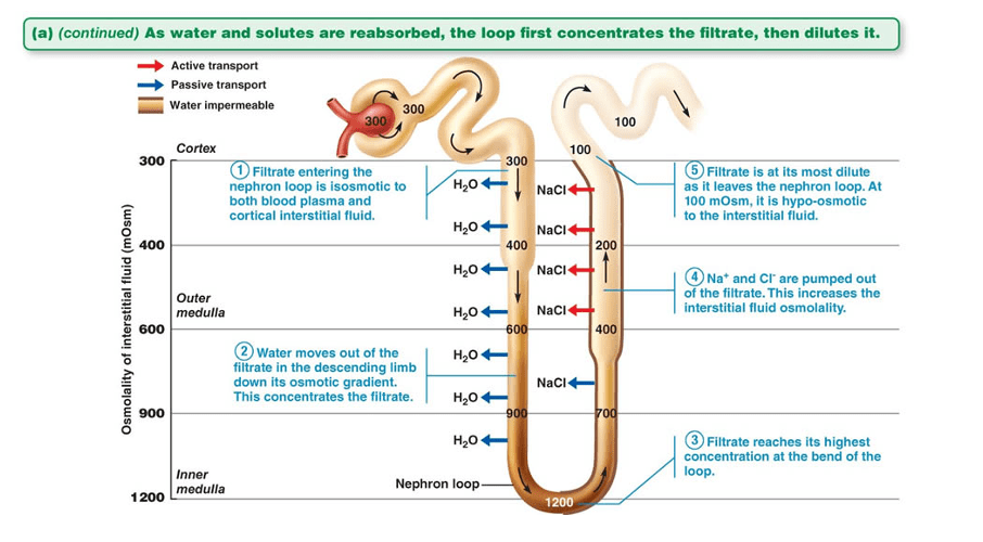*Explanation: The descending limb of the loop of Henle is permeable to water and allows for the passive reabsorption of water, concentrating the filtrate.
