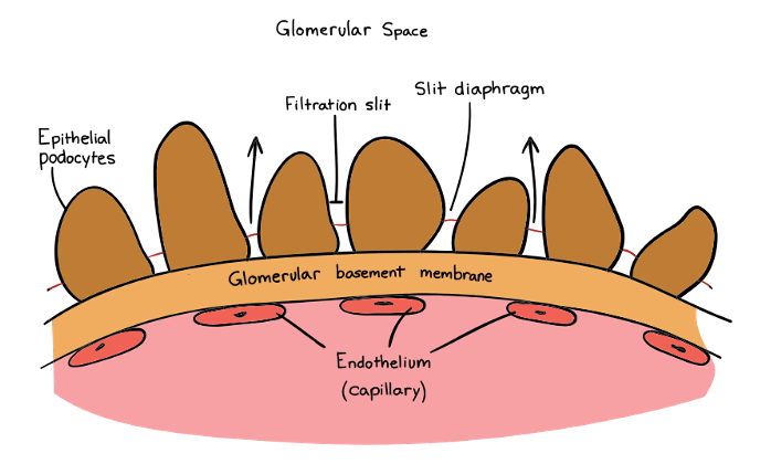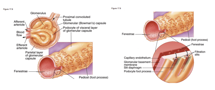 *Explanation: Podocytes are specialized cells in the glomerulus that form the visceral layer of Bowman’s capsule and are responsible for the filtration of blood in the renal corpuscle.*