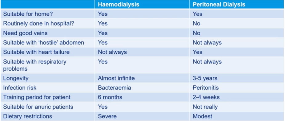 Explanation: Peritoneal dialysis is less suitable for patients with respiratory issues, particularly those with chronic respiratory disease or volume overload, as it involves instilling fluid into the peritoneal cavity. The fluid can elevate the diaphragm, leading to reduced lung expansion, which may worsen respiratory function or exacerbate breathing difficulties.