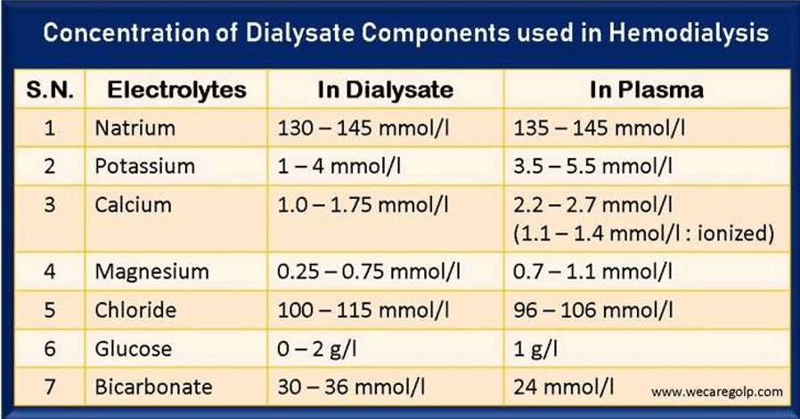 Option D is incorrect because high hydrogen ions (H⁺) would worsen acidosis, not alleviate it. Instead, bicarbonate in the dialysate helps to neutralize excess H⁺ in the patient’s blood.
